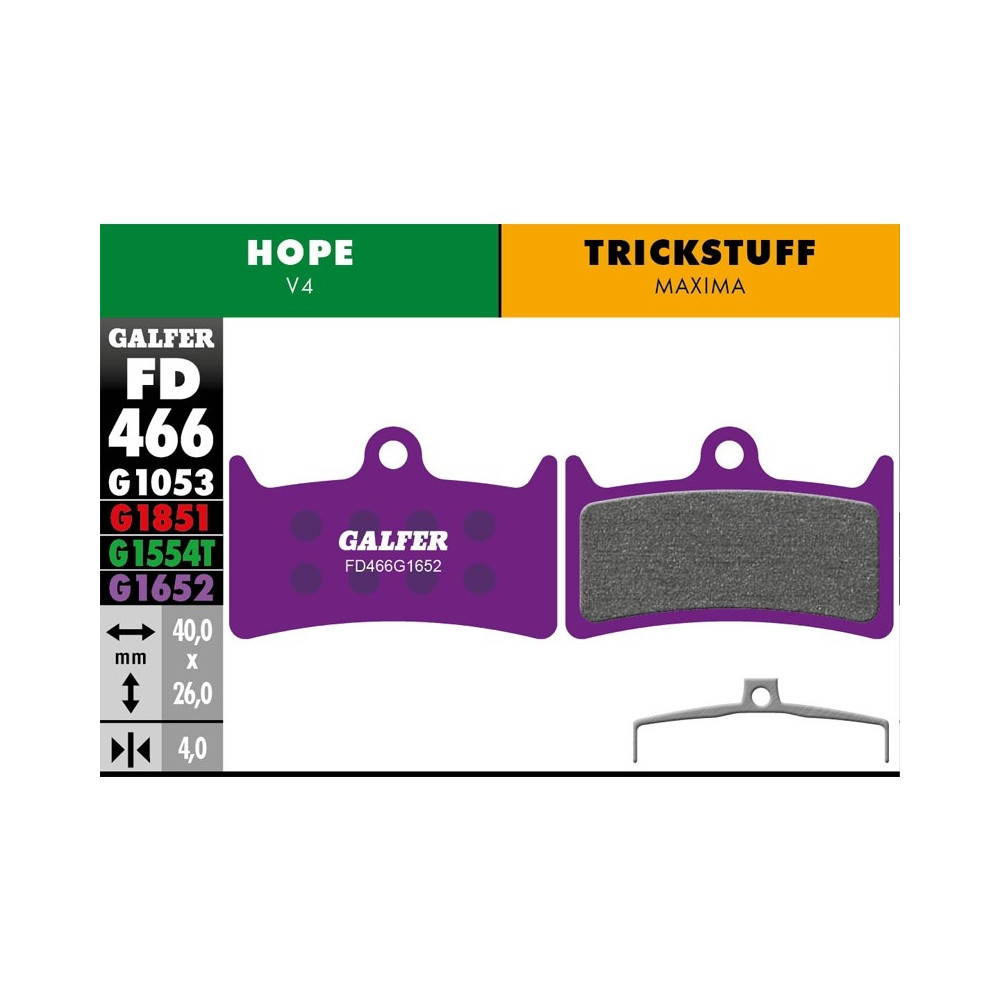 Brzdové platničky GALFER - FD466 - HOPE V4 Zmes: G1652 fialová E-Bike