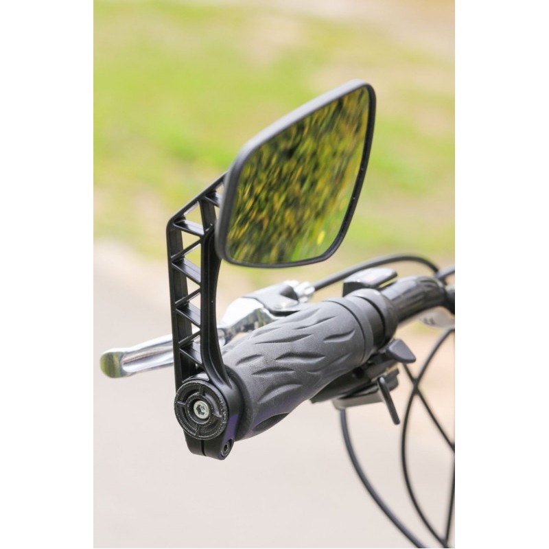 Odrazová plocha zrkadla 56 cm2, montovateľné na pravú alebo ľavú stranu riaditok, zrkadlo vyrobené z pochromovaného polyamidu, držiak vyrobený z ABS plastu zosilnený skleneným vláknom, odolný proti polámaniu, pre priemer s adaptérmi od 16 mm do 22 mm, ideálne pre mesto a volný čas, vhodné pre E-bike.